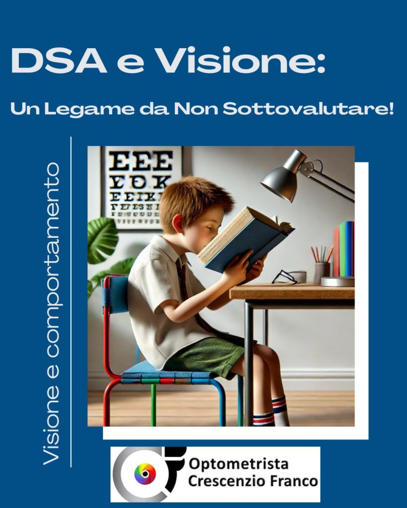 - Molti bambini con DSA non hanno problemi di acuità visiva centrale, ma eventuali difetti refrattivi come ipermetropia, astigmatismo e anisometropia possono interferire con la lettura prolungata.